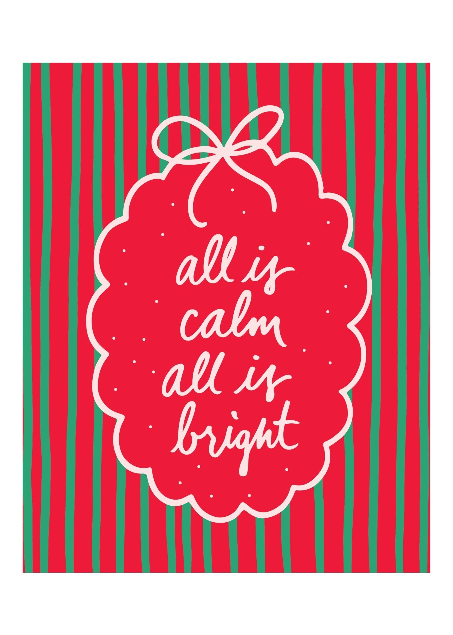 Låt stillheten och glädjen lysa fram med All Is Calm All Is Bright Poster – en varm och handritad juldesign i klassiska röda och gröna nyanser. Perfekt för att skapa en lugn men festlig känsla i hemmet under julen. En harmonisk poster som påminner om julens sanna stämning.