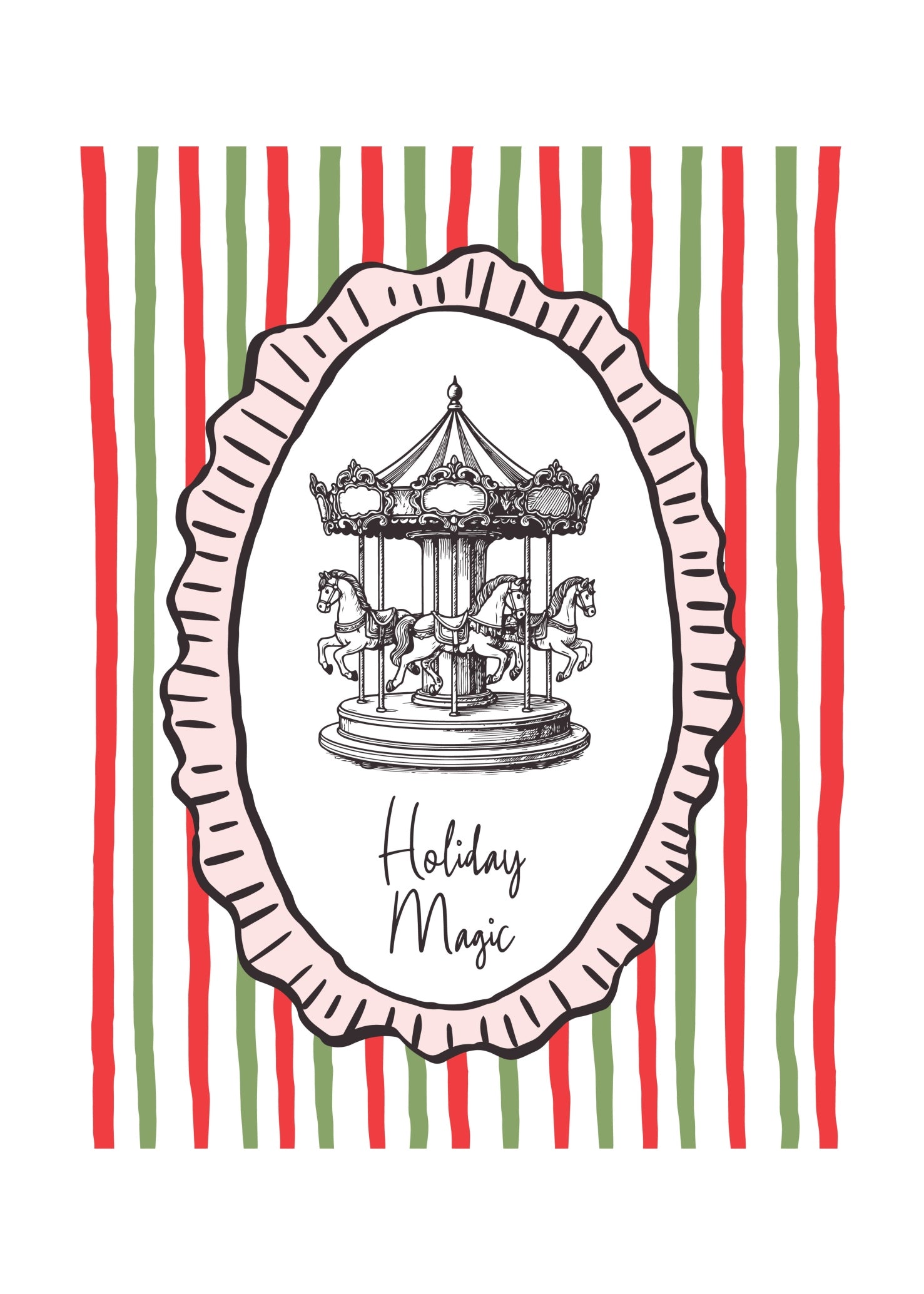 Fånga julens magi med Christmas Express Carousel Poster – en elegant och nostalgisk illustration av en klassisk karusell i vinterns färger. En perfekt poster för dig som älskar julmarknader, sagostämning och vintageinspirerad inredning.