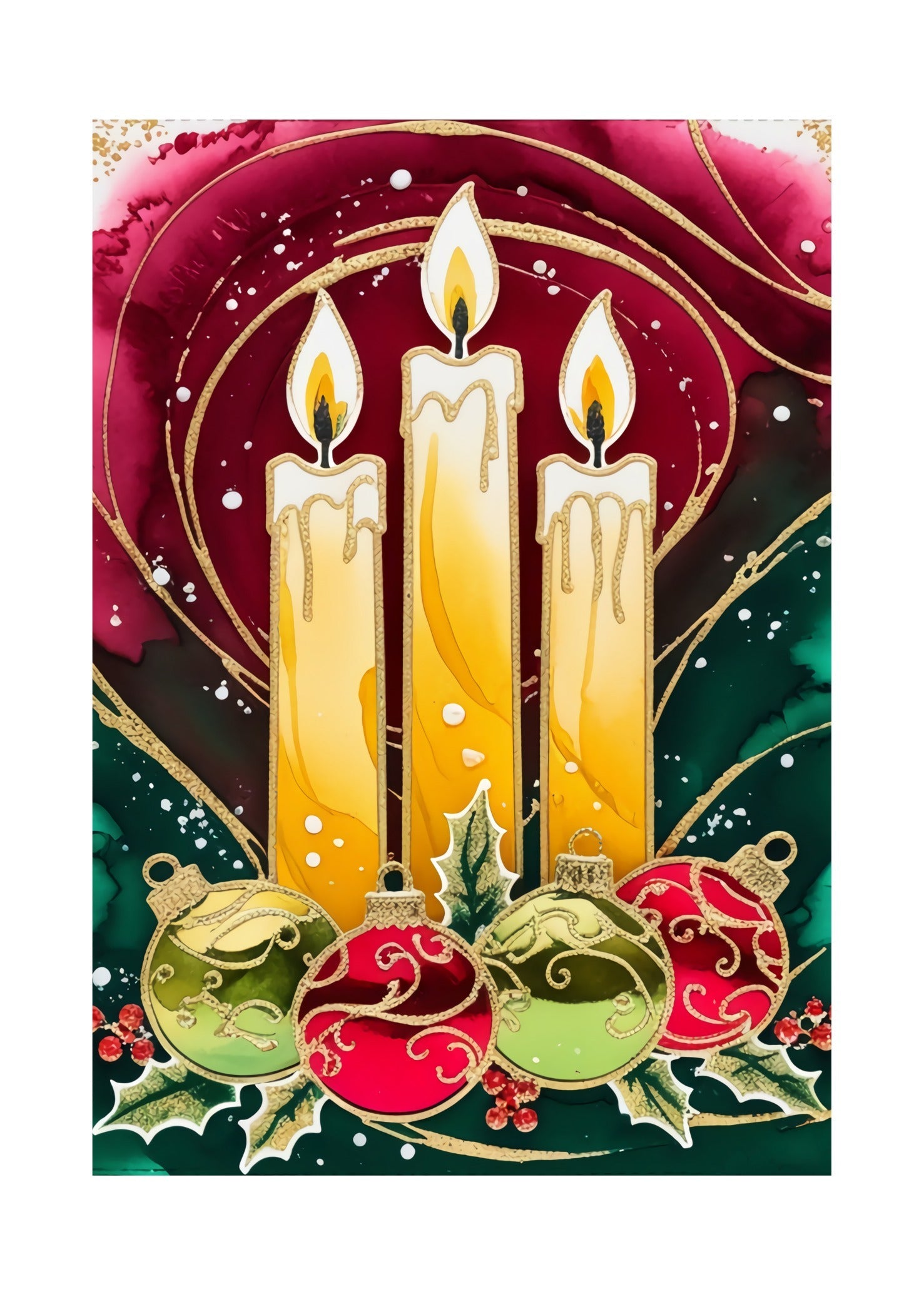 Låt ditt hem lysa upp med Christmas Glow Poster – en elegant och färgstark serie julmotiv med levande ljus, röda julkulor och gröna blad. Perfekt för dig som vill skapa en klassisk, varm och lyxig julkänsla på väggen. Serien består av fem matchande posters som tillsammans sprider både glädje och julstämning.