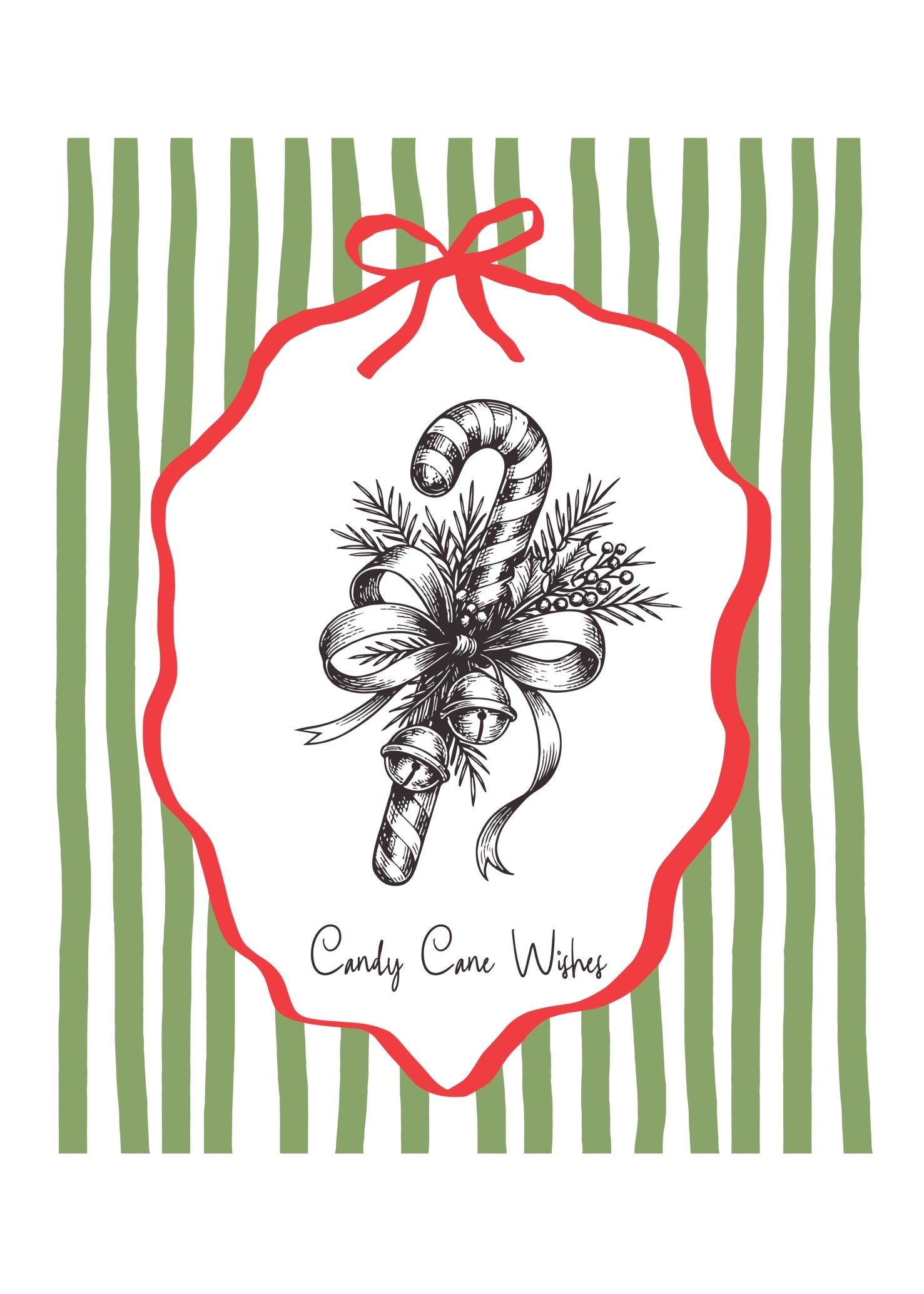 Låt julens söta sida ta plats med Classic Christmas Candy Cane Poster – en vacker design med handritad polkagriskäpp och grankvistar i vintage-stil. En tidlös julposter som tillför charm, tradition och glädje till varje rum.