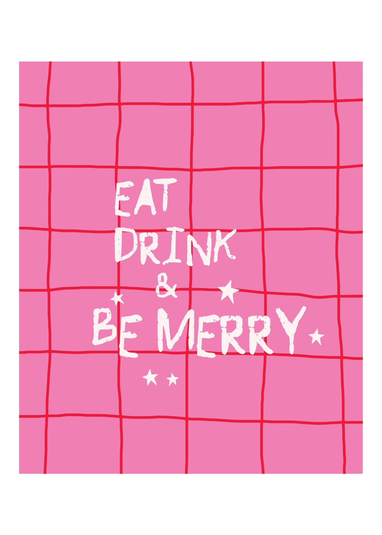 Fira säsongen med Eat Drink & Be Merry Poster – en lekfull och färgstark design med text i vitt mot rosa bakgrund och röda linjer. Denna poster förmedlar julens glädje, gemenskap och feststämning på ett modernt och charmigt sätt. Perfekt för köket, vardagsrummet eller hemmets samlingsplats under högtiden.