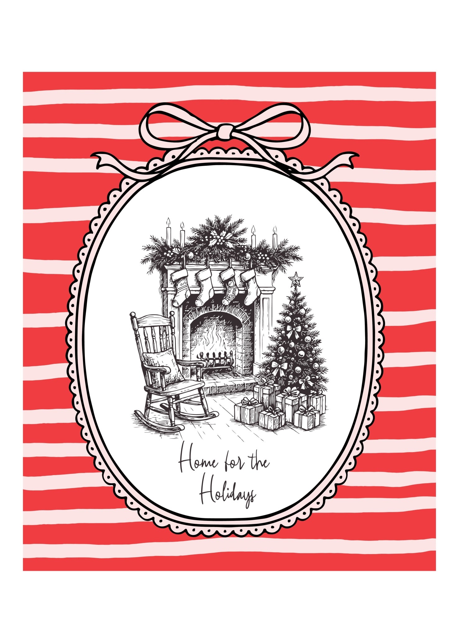 Skapa en ombonad och stämningsfull atmosfär med Holiday Nostalgia Fireplace Poster – en elegant design med sprakande brasa, julgran och paket som symboliserar lugnet och gemenskapen under högtiden.