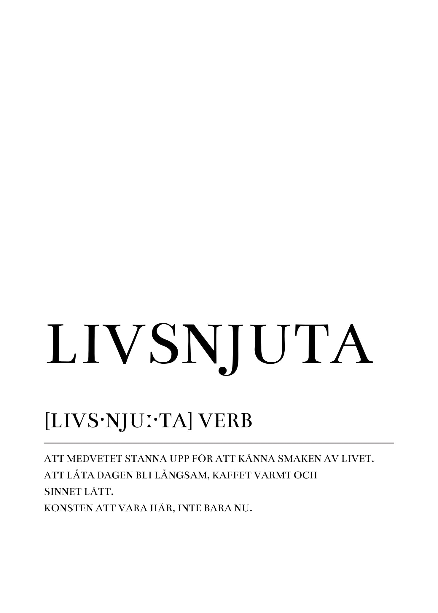 Livsnjuta Poster beskriver konsten att ta vara på varje ögonblick. En inspirerande och elegant poster som påminner om att livet är till för att levas – fullt ut.
