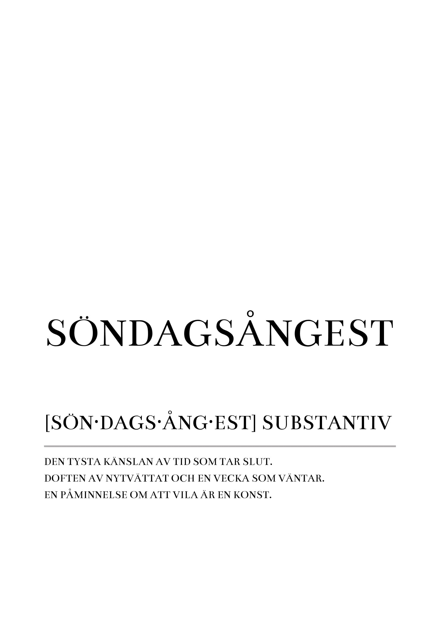 Söndagsångest Poster fångar känslan av slutet på helgen med humor och stil. En perfekt väggdetalj för den som tar livet med en nypa självdistans.