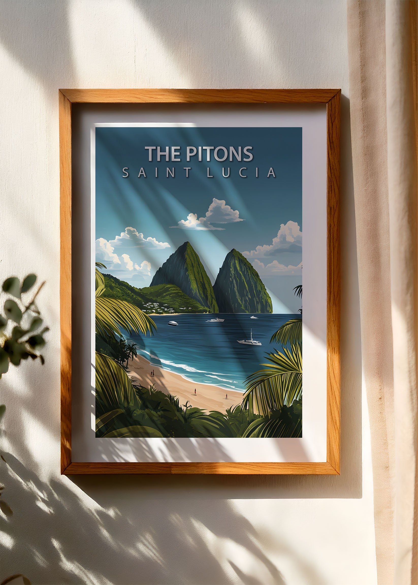 The Pitons Poster visar tropisk skönhet och balans mellan land och hav. En poster som andas värme, natur och harmoni.