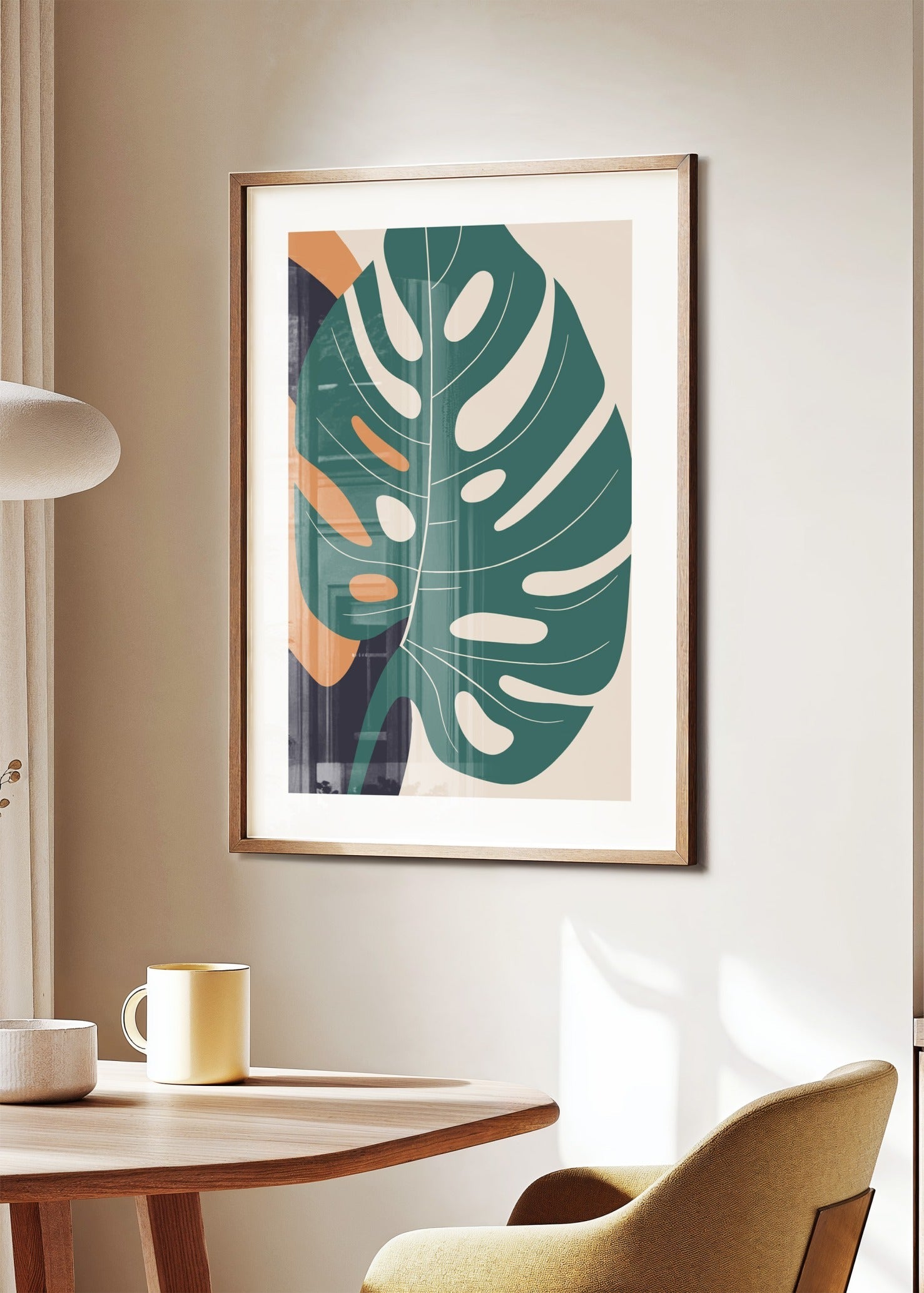 Tropical Essence Poster-kollektionen för in naturens rytm i ditt hem med organiska former och varma, jordnära toner. De stilrena monstera-bladen kombineras med modern design och mjuka färger som skapar en känsla av lugn och balans. Perfekt för dig som vill addera tropisk elegans och konstnärlig värme till din inredning.