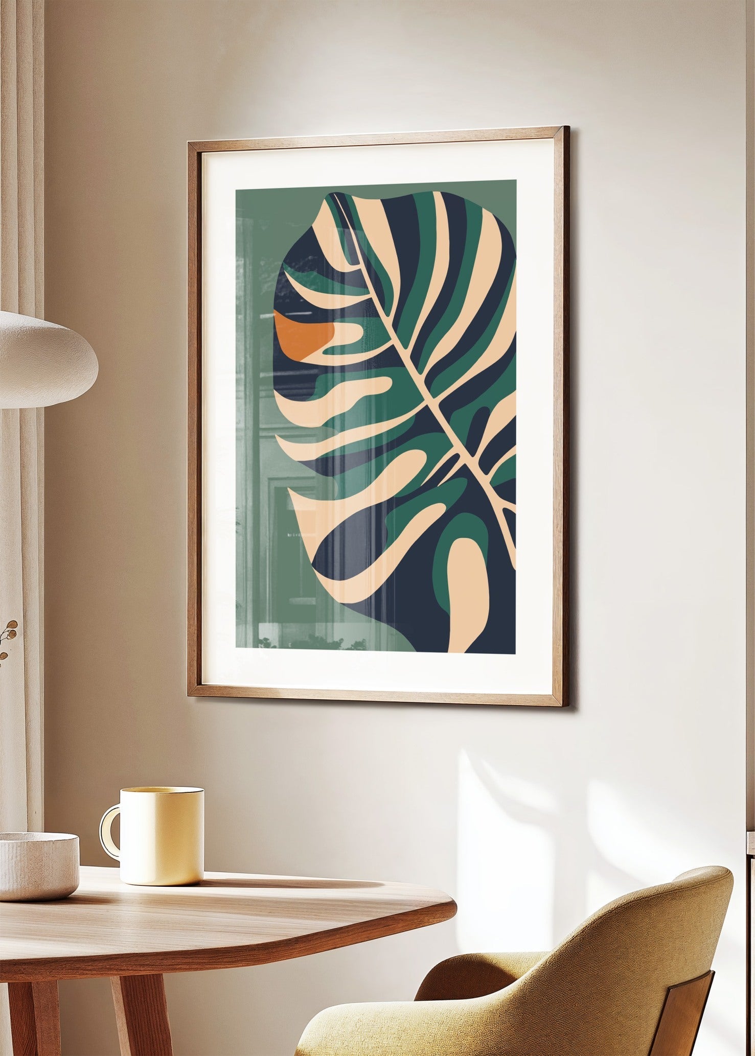 Tropical Essence Poster-kollektionen för in naturens rytm i ditt hem med organiska former och varma, jordnära toner. De stilrena monstera-bladen kombineras med modern design och mjuka färger som skapar en känsla av lugn och balans. Perfekt för dig som vill addera tropisk elegans och konstnärlig värme till din inredning.